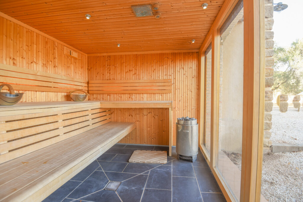 Genießen Sie ruhige Momente inmitten des Olivenhains und entspannen Sie in der Sauna oder am Pool, um Körper und Geist zu regenerieren.
